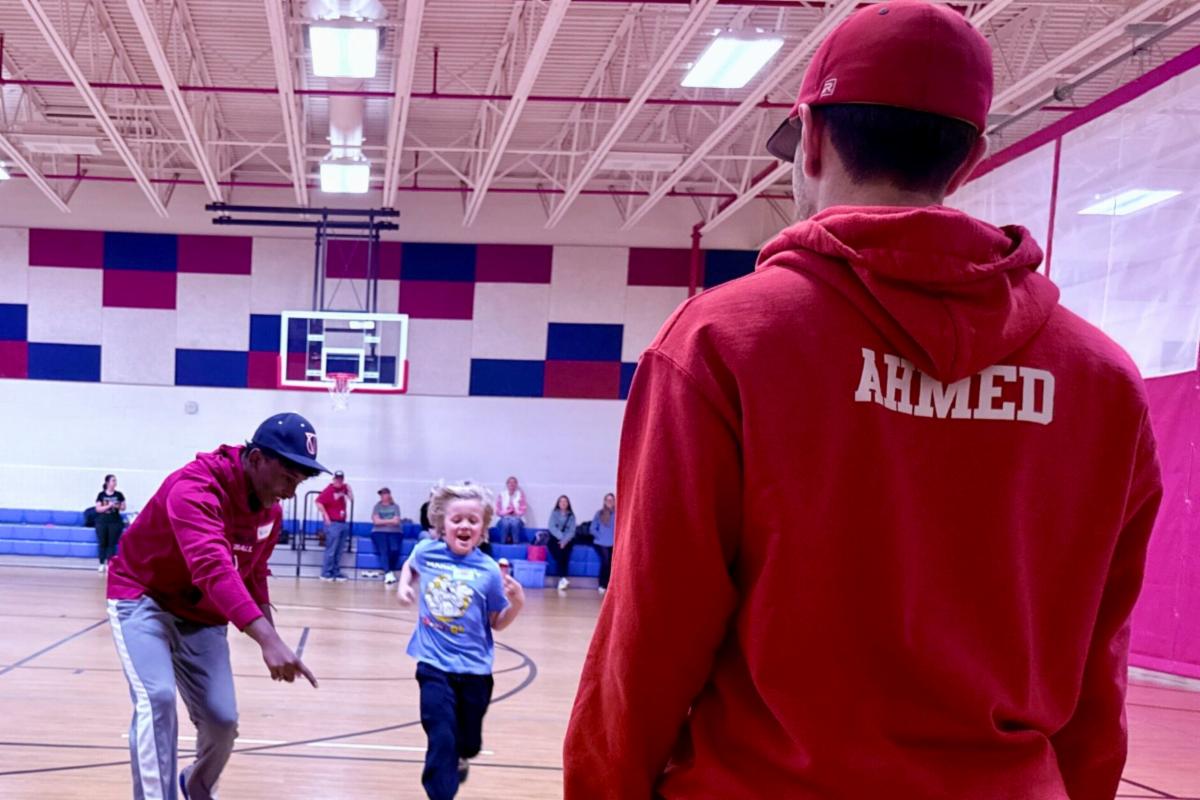Twenty members of the schoolâs varsity baseball team volunteered as coaches, guiding the athletes through drills. Haydonâs brother Nick helped out in the sensory room.