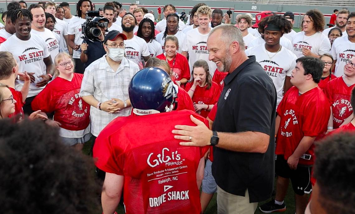 The Wolfpack celebrates a “Victory Day” during preseason camp each year at Carter-Finley Stadium. NCSU has partnered with GiGi’s Playhouse to give cognitively and physically impaired children a chance to play football alongside the Pack. GiGi’s Playhouse of Raleigh provides educational, therapeutic and career-building opportunities to those with Down syndrome.