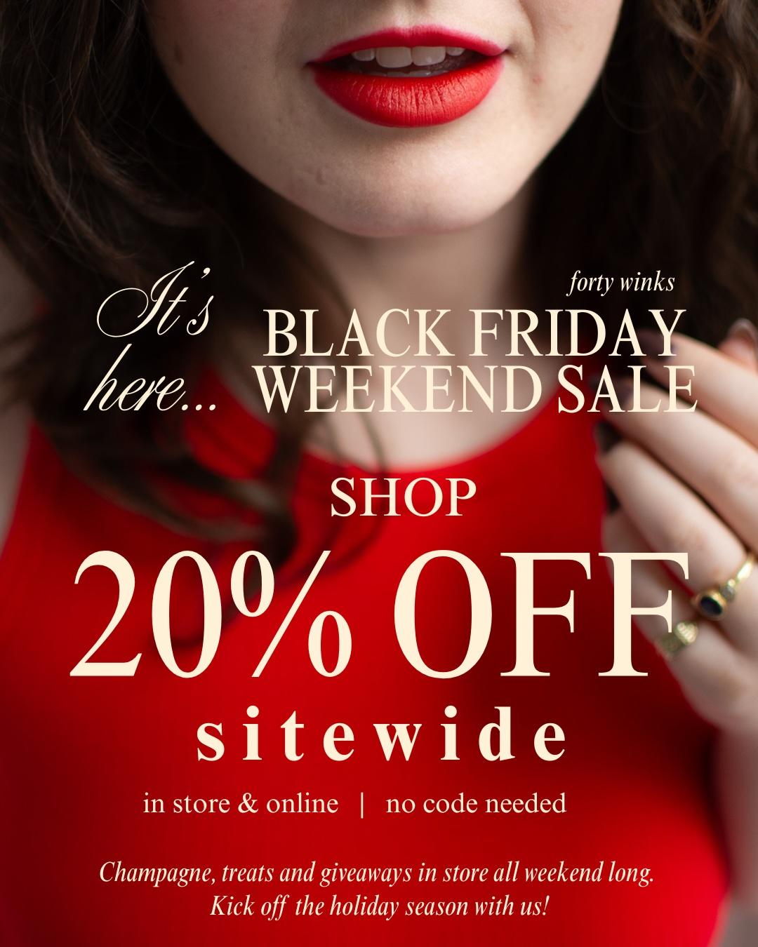 20% off our entire collection, both in-store and online, from Friday, November 28, to December 1.
