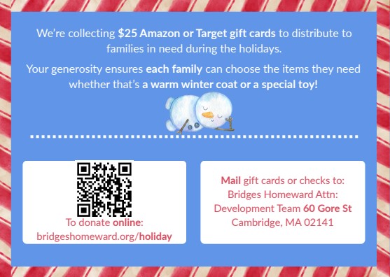 For the past 11 years, I have worked with First Parish Cambridge Unitarian Universalist, Harvard Square Business Association, Hilton’s Tent City, and the Central Square Business Improvement District, on the Winter Warmth Drive, a fundraising effort to purchase sleeping bags for unhoused people in Cambridge.