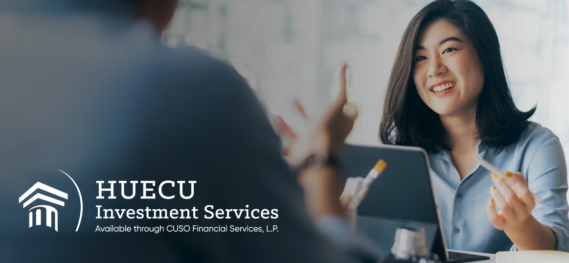 Whether you’re planning for retirement, saving for college, wondering what to do with an inheritance, changing jobs, evaluating IRA options or just starting to think about your financial goals—HUECU Investment Services is here to help.