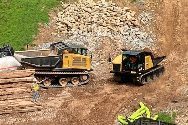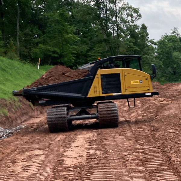 The PANTHER T7R can carry multiple types of material. What sets it apart is the ability to climb high degree slopes. The rubber tracks have numerous blocks that provide bite into the ground while angular cuts and “zig-zag” tread give the machine side-hill grip. The dynamic track tension gives you proper tension while working and the large wheels mean more contact with the ground and more stability.