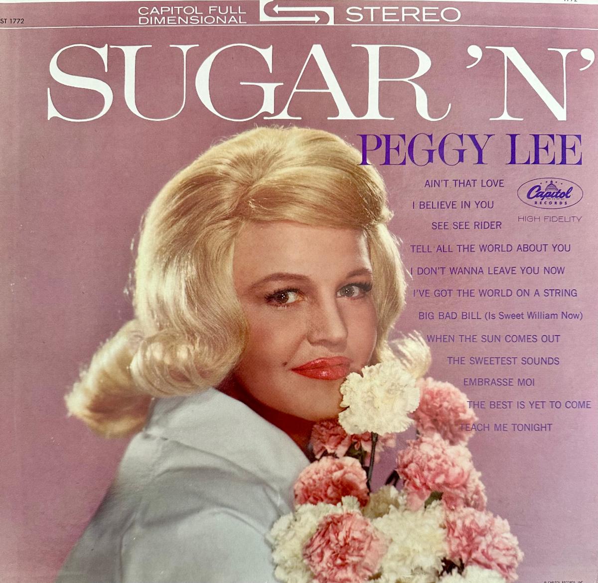 | | Ole ala Lee! – The title says it all! The songs on this 1961 album are styled in a spectacular Latin fashion. This isn’t her first attempt at Latin rhythms, it’s a follow-up to her 1960 disc, “Latin a la Lee!” Here Peggy’s sultry voice comes through on the slower, romantic bolero style songs like “By Myself” and “You Stepped Out of a Dream.” The more pop songs like “Love and Marriage” don’t hold up to the authentic Latin sound. | | I Like Men! - Both the album title and Peggy Lee’s sly, knowing smile on the front cover let you know you are about to hear some sexy song delivery on this 1959 record. She opened up the Great American Songbook to find some lesser-known songs like “Charley, My Boy,” and also co-wrote the title track. | | Sugar N’ Spice – one of the best things about this 1962 album is the cheesy record cover! One side is the “Sugar” pic of Peggy and the other is her “Spicy” look. This disc has it all – jazz pop versions of Broadway tunes like “I Believe in You,” a cover of Ma Rainey’s “See See Rider,” and even the novelty tune, “Big Bad Bill.” If you’re not that familiar with Peggy Lee, this is the album to get, highlighting her dynamic range of emotions. | |
