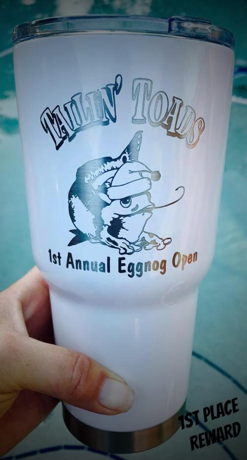 1st Place reward for the Annual Eggnog Open is this Custom Cup full of CASH! Join us December 17th!