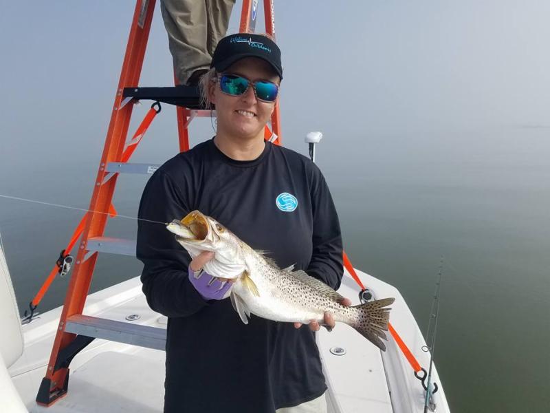 Kyle Skipper verifying that the trout are back! He was using MirrOlure CR20MR-ECTR and 20MR-18 lures.