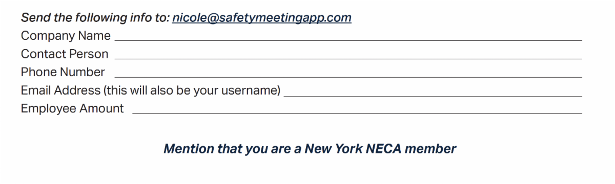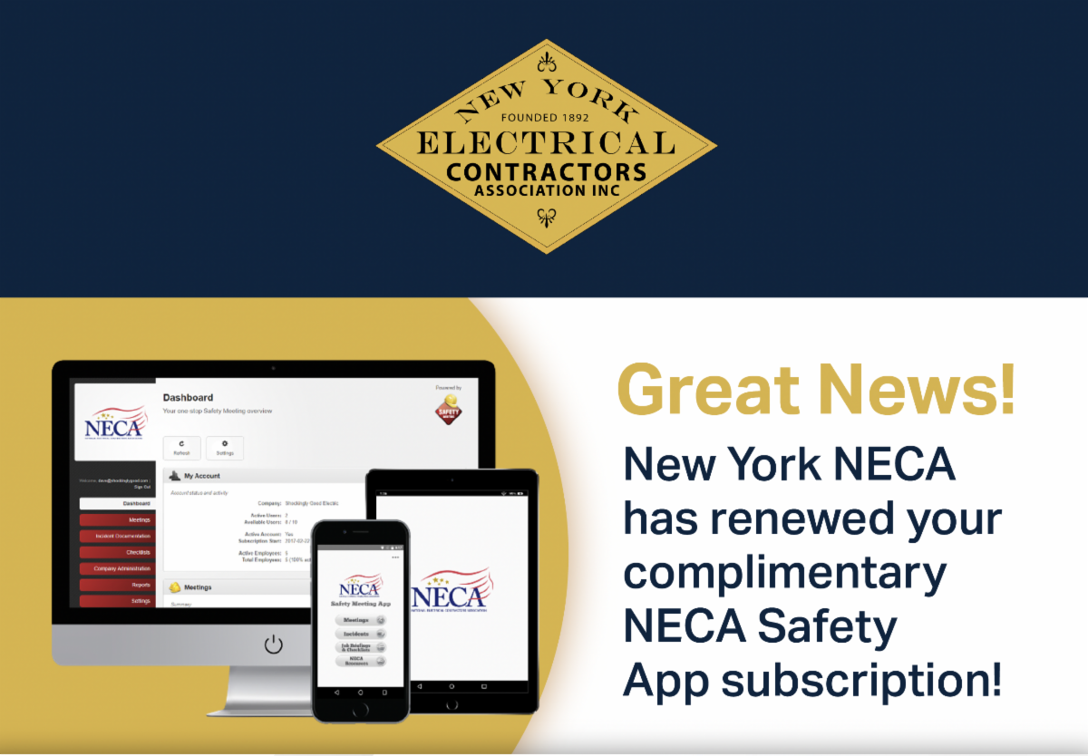 As a NYECA member, you are entitled to a single-user license for the NECA Safety App.