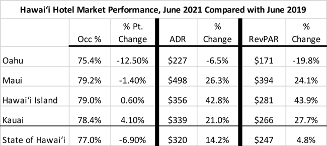 ● The neighbor island RevPAR’s were up between 24.1% and 43.9% for the month of June over 2019.