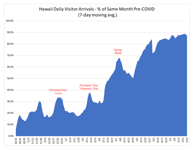 ● Maui County’s ADR is approaching $500, up 26.3% over 2019
