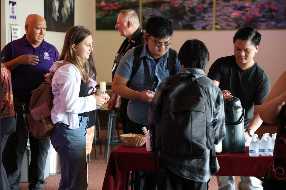 We didn't know if anyone would show up for our first Coffee Hour, so we were delighted our first two attendees were students!. Chancellor Sanchez snapped this moment to memorialize it for history.