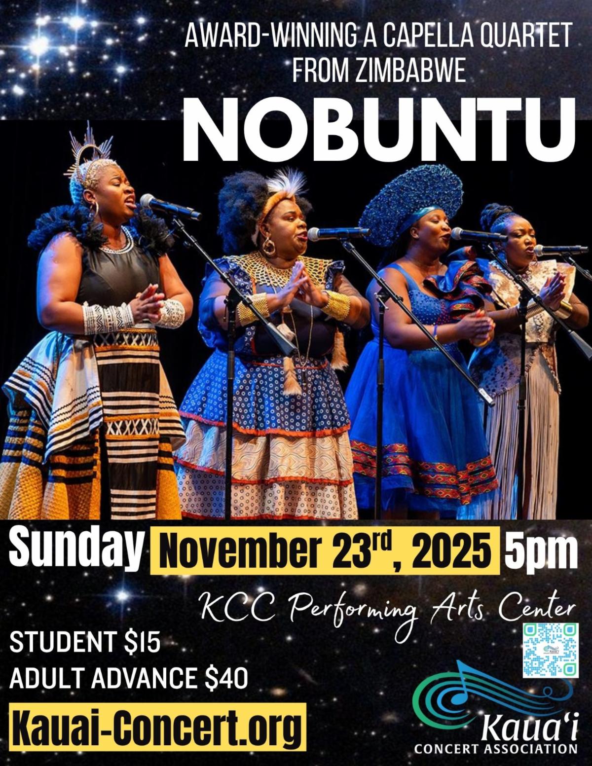 An award-winning all-female a cappella quartet from Zimbabwe. They will share traditional songs, Afro-jazz and gospel, complete with traditional percussion and authentic dance movements.