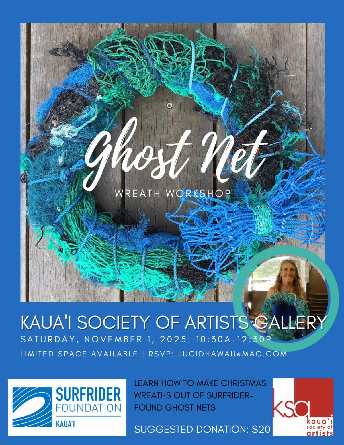 Monika Mira will hold a Ghost Net Wreath Workshop at the KSA Gallery, Saturday, Nov 1st, 10:30am.