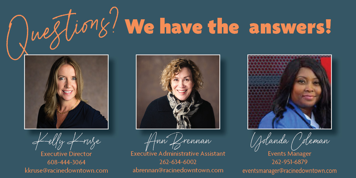 If you have any questions, feel free to contact Yolanda at 262-951-6879 or eventsmanager@racinedowntown.com.