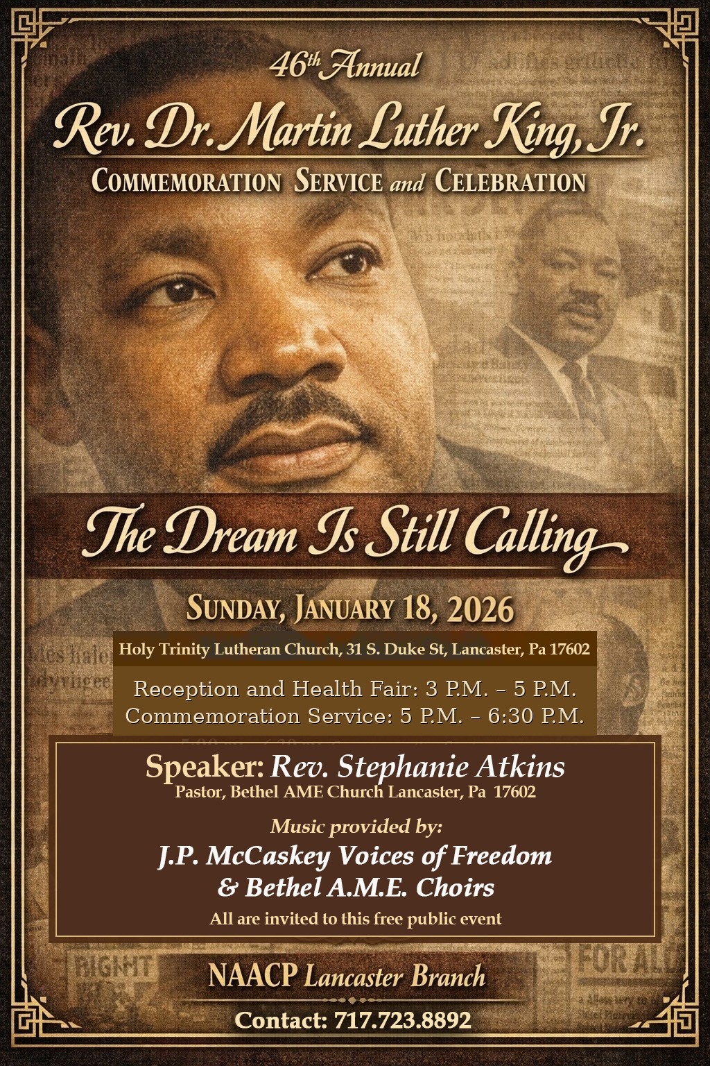 Sunday evening, join me and our youth for the annual NAACP MLK, Jr. Service at 5:00 PM at Holy Trinity Church on South Duke Street. We will hear Bethel AME’s new and first female pastor's call and challenge to us to do the Christian work of justice and peace together that remains to be done in and from our churches across our communities.