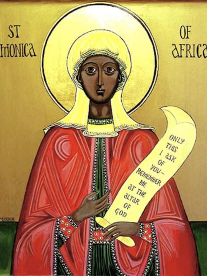 Other than the Virgin Mary herself, no other mother is considered to have had so much influence on the early Catholic Christian Church as Monica of Tagaste, Africa. Saint Monica spent most of her life worrying and praying for her son Augustine's Christian conversion, who eventually became one of the Church’s greatest theologians. A crowning moment for Saint Monica was when she saw her son finally baptized in the Church. St. Monica died in the year 387.