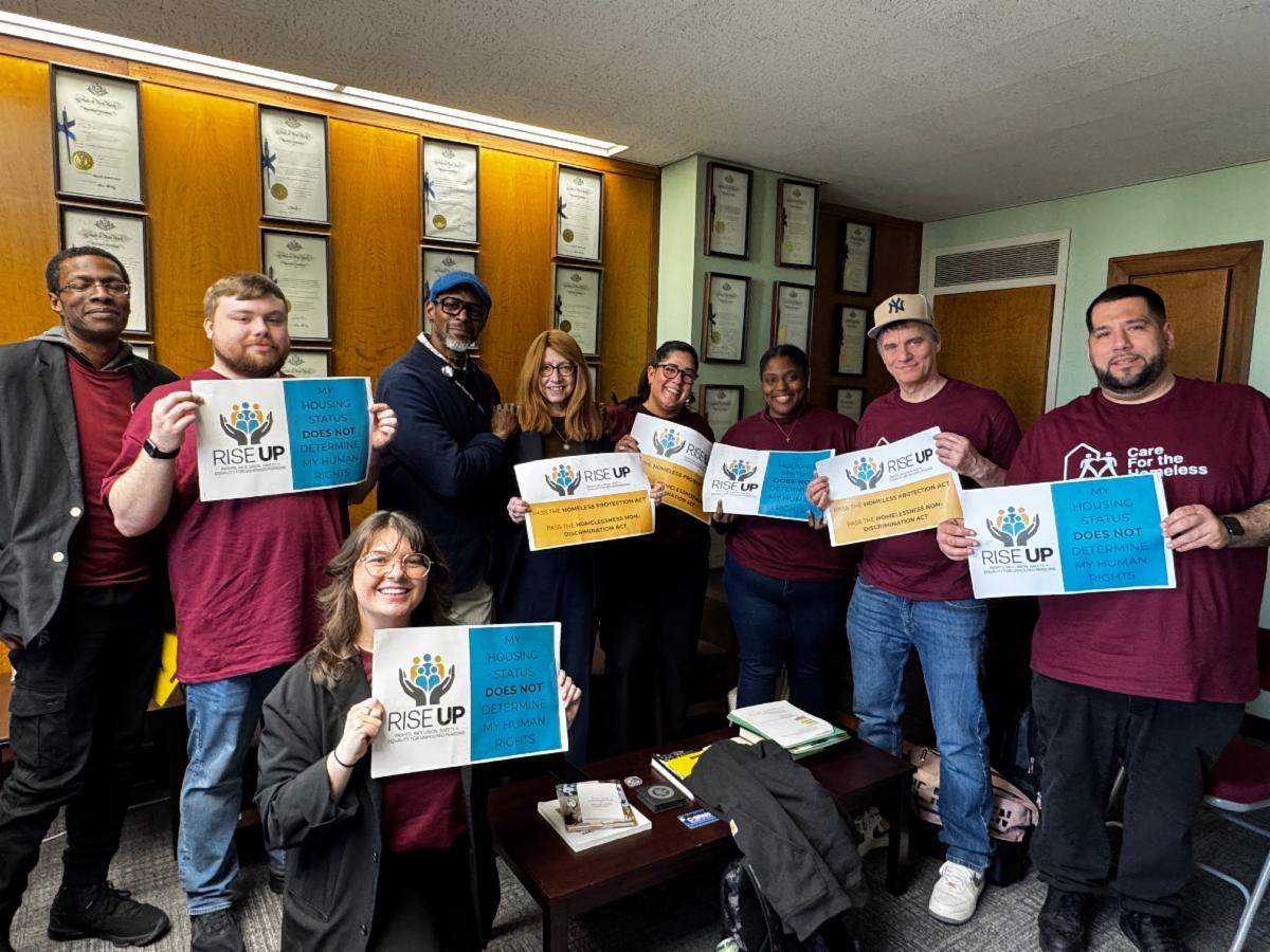 Care For the Homeless is proud to co-lead the RISE UP Campaign, a statewide effort to advance protections against discrimination and violence that people experiencing homelessness experience in their daily lives. This legislative package includes the Homeless Protection Act (HPA) and the Homelessness Non-Discrimination Act (HONDA), which would establish homelessness as a protected class under New York law and create mechanisms to track and address harm.