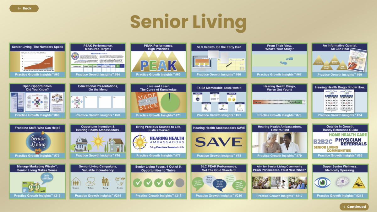 “Upbeat campaign themes kindle awareness and our second Outside In strategic cornerstone, Senior Living Communities (SLC), skillfully promotes Healthy Hearing, Better Living. Like evidence-based plans of care, practice growth initiatives should be fact-driven.”