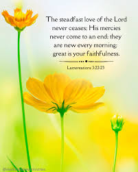 Because of the loving devotion of the LORD we are not overtaken, for His mercies never fail. 23They are new every morning; great is Your faithfulness! Lamentations 3:22,23