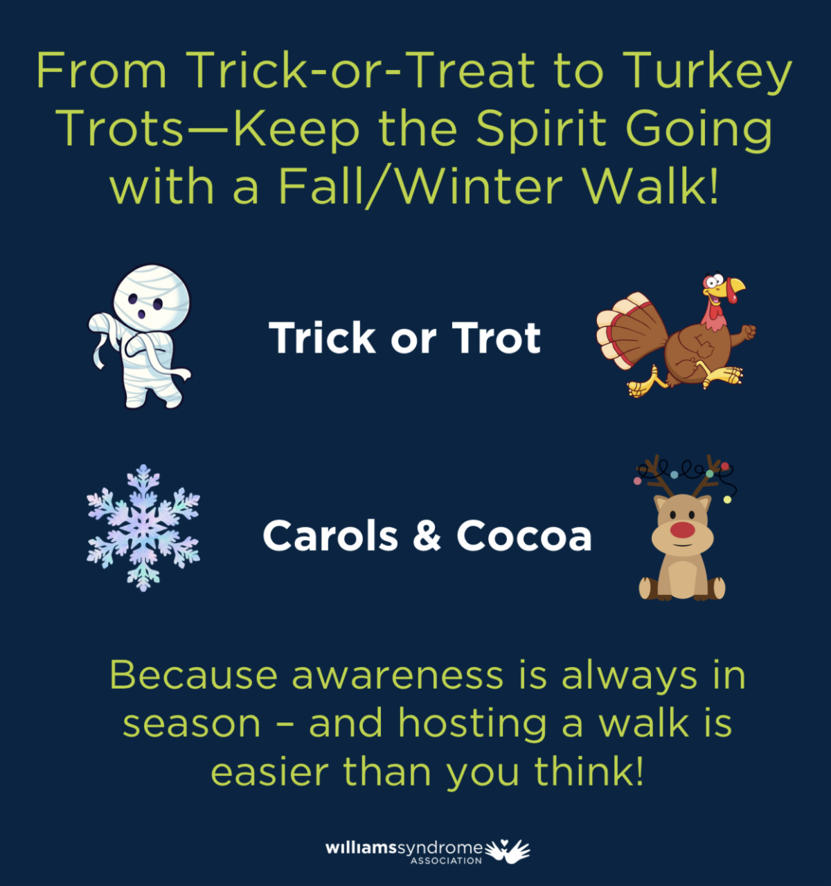 Let’s wrap up the 2025 Walk Season in style! Whether it’s a spooky Trick-or-Treat Walk, a festive Turkey Trot, or a cozy Carols & Cocoa Walk, you can help us end the year with a bang. Learn how you can host a walk in your community!
