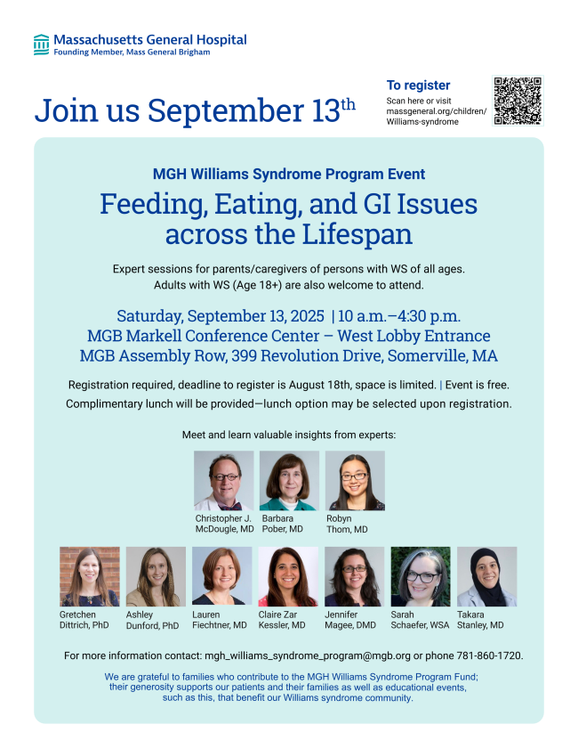 Opportunity 2: Massachusetts General Hospital and the Lurie Center for Autism are currently recruiting for a research study on Aging in Williams Syndrome: Aging in Williams Syndrome