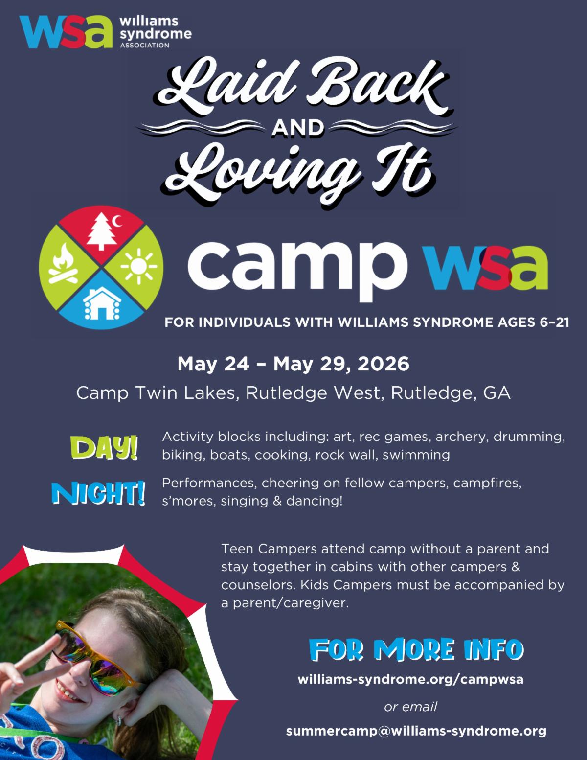 Summer camp registration for individuals with WS ages 6 - 20 is in full swing! Applications to be a camper or request a scholarship are ready and waiting for you!