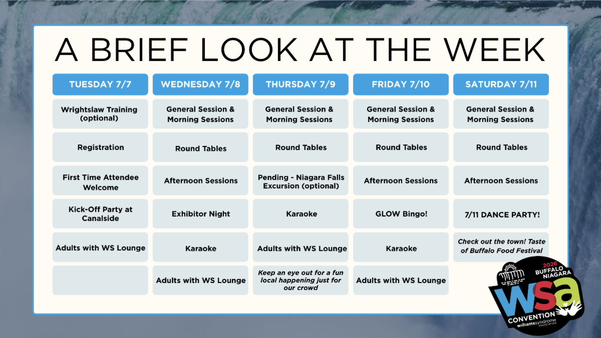 Sessions for Everyone – Learn from parents, educators, medical professionals, and friends with Williams syndrome as they share knowledge, insights, and experiences.