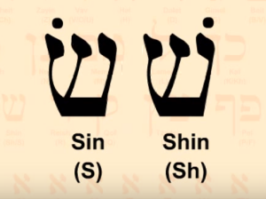 Note that the dot on the right of the letter causes it to have the 'sh' sound while a dot on the left causes the sibilant 'sss' sound. The letter shin is always on a Mezuzah because it is the first letter of the name of God, שדי (Shaddai).  Also, inside of the Mezuzah is a copy of the Sh'ma - which also begins with the letter shin.