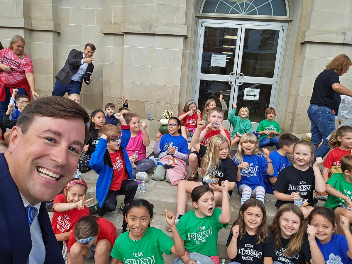 Woodford County Judge/Executive and Magistrate William Downey welcomed second graders from Southside Elementary to the courthouse to learn about county government. | |