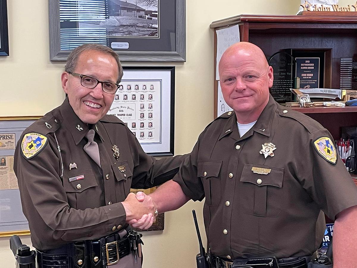 Hardin County Sheriff John Ward helped promote Sergeant Travis Cook to lieutenant. He also will be assigned to the patrol division. | |