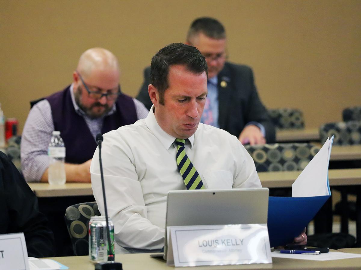 Commonwealth's Attorney and new KACo board member Louis Kelly looks over the finance report at the quarterly Board of Directors Meeting Thursday. | |
