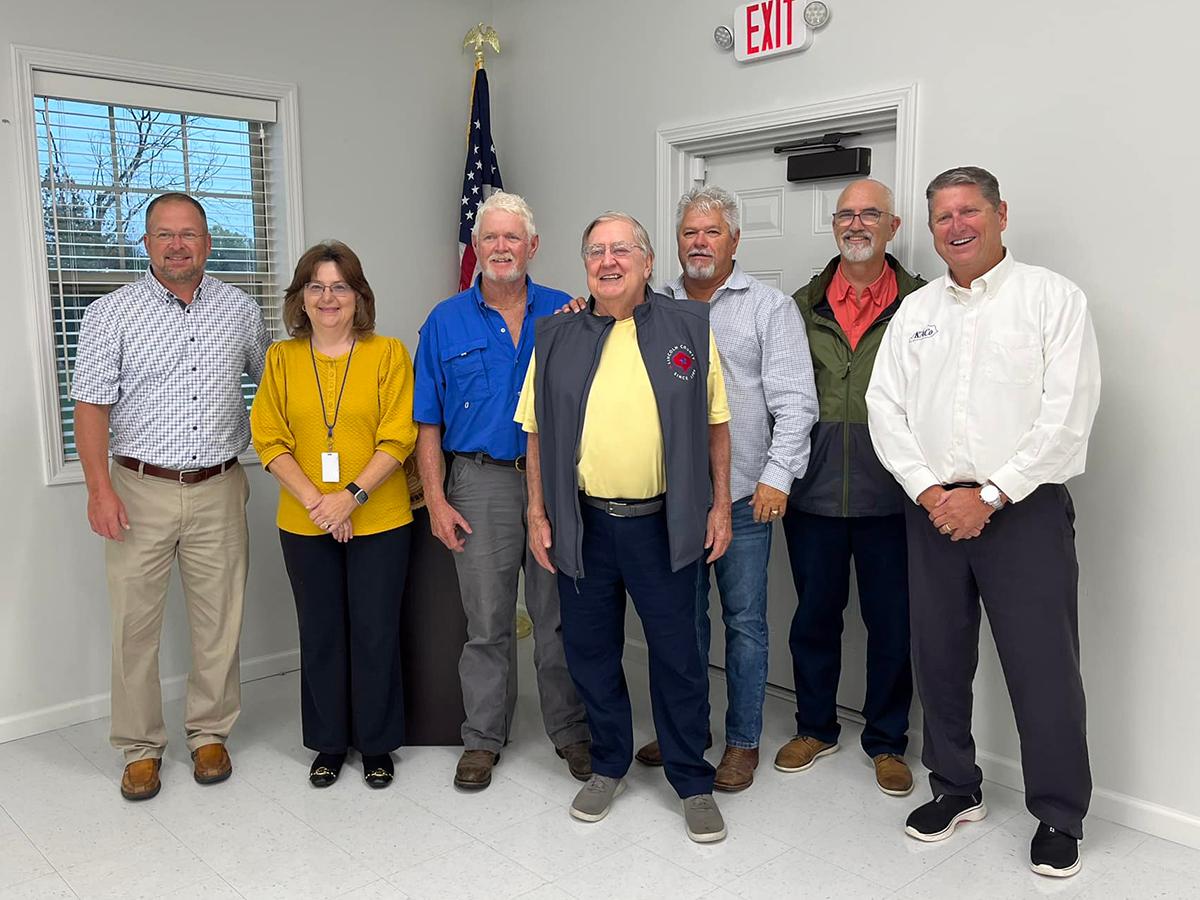 KACo's BJ White and Lonnie Campbell attended a Lincoln County fiscal court meeting recently. From left are: Judge/Executive J. Woods Adams, BJ White, magistrates Joseph Stanley, David Faulkner, Bobby King and Dan Gutenson and Lonnie Campbell. | |