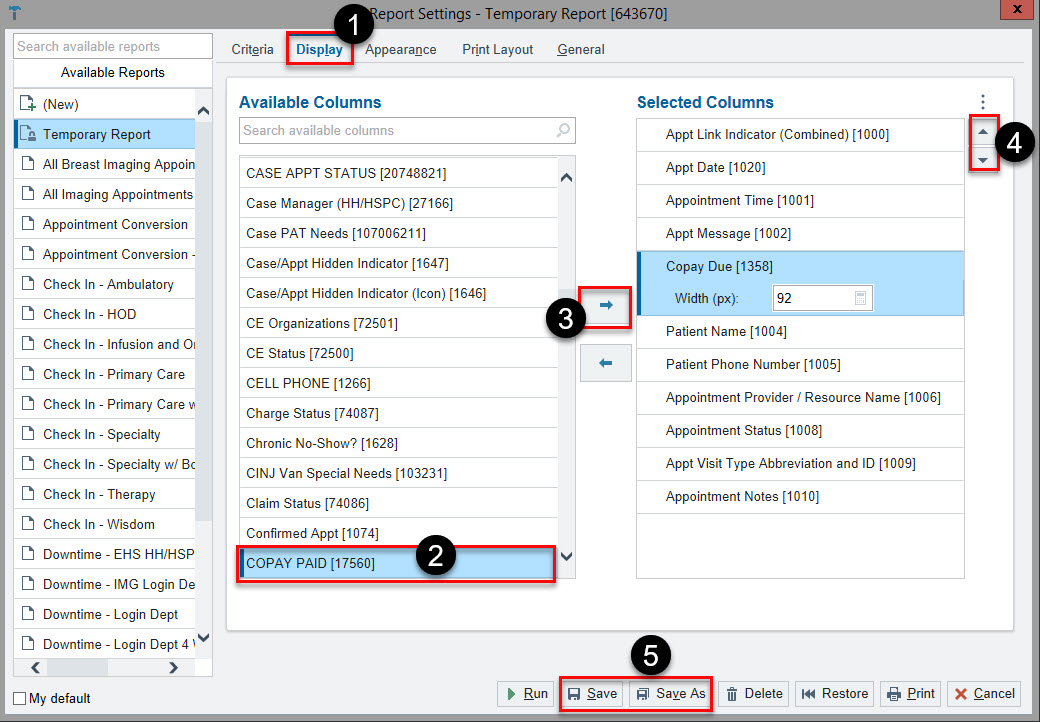 From the Department Appointments Report (DAR) or the Today's Patients Report (TPR), you can add the Copay Due and Copay Paid columns to easily view copay information!