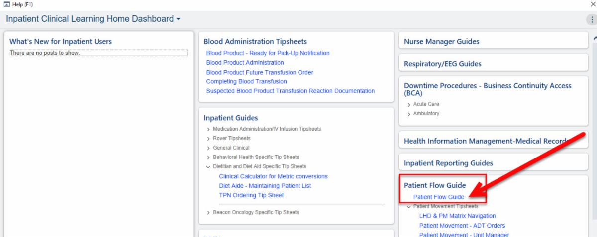 Press F1 to access the Patient Flow Guide, which contains the steps to efficiently complete patient movement in Hyperspace.