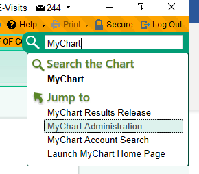 Search MyChart in Chart Search to easily locate MyChart Administration.