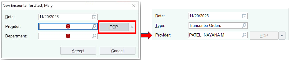If the ordering/authorizing provider is also the patient’s Primary Care Provider (PCP), click PCP instead of searching to ensure correct selection. | |