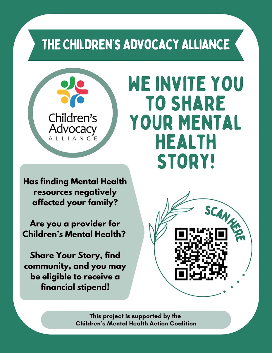 Children's Advocacy Alliance wants to hear your story! Your experience could help your community and make you eligible for a financial stipend. | |