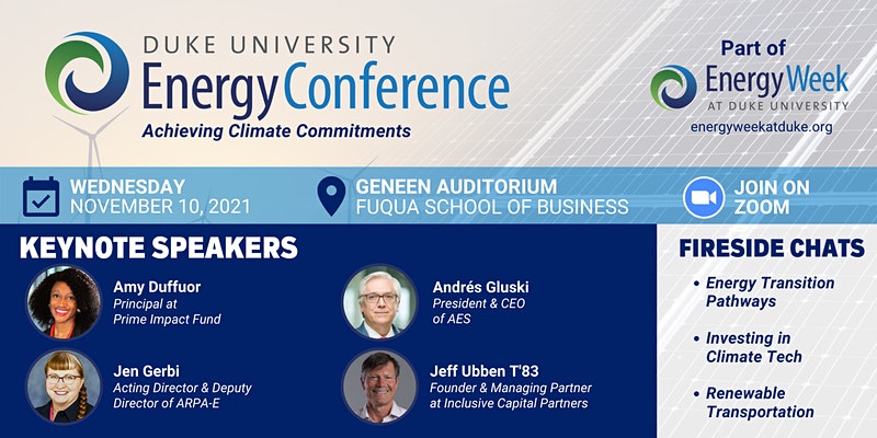 New! 13th Annual Duke University Energy Conference | Hosted by Duke University | Wednesday, November 10, 9:00am - 4:30pm ET