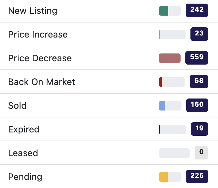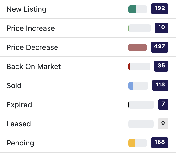 Residential Sales, Price Cuts, Inventory, & Pending Properties