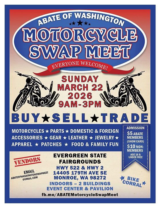 I would like to take a moment to sincerely thank everyone who has stepped up over the past several months. Your dedication, time, and willingness to serve have not gone unnoticed. It is because of members like you that ABATE of Washington continues to move forward with strength and purpose. As we look ahead, my goals remain focused on transparency, open communication, and togetherness. We are working hard to build a culture where information is shared clearly, members feel heard, and we stand united in our mission to protect and promote motorcyclists’