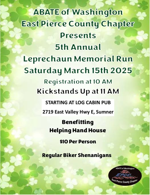 Our Chapter is excited to see you all at our 6th Annual Leprechaun Memorial Run on Saturday, March 14th. Please see our flyer in this Newsletter or on the website!