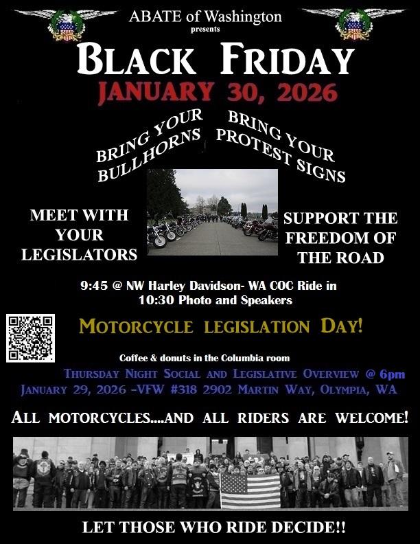 Just a quick shout out for everybody to SAVE the DATE of FRIDAY, January 30th for our annual Motorcycle Legislation Day- BLACK FRIDAY.