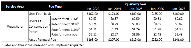 Updated Upper Westshore Estates water fees