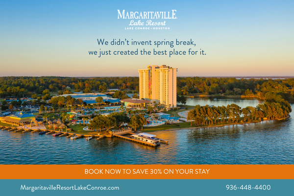 Margaritaville Lake Resort Lake Conroe | Houston is the best place for a spring break vacation and now you can save 30% off* our best rates on stays anytime from March 6 through April 30, 2026.