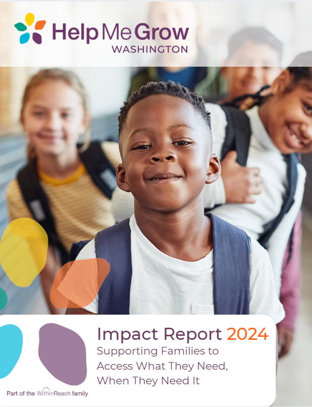 Lanzamiento del nuevo informe de impacto de Ayúdame a Crecer WA Finalizamos el Informe de impacto 2024 de Ayúdame a Crecer WA (Help Me Grow Washington, HMG WA), que detalla nuestros esfuerzos por apoyar a las familias y ampliar las alianzas del sistema. El informe muestra el impacto de nuestras iniciativas y lo invitamos a compartirlo en sus redes.