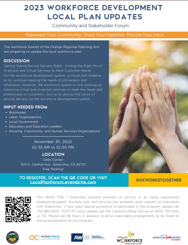Your input will be used by the workforce boards of the Orange Regional Planning Unit to update the local workforce plan.