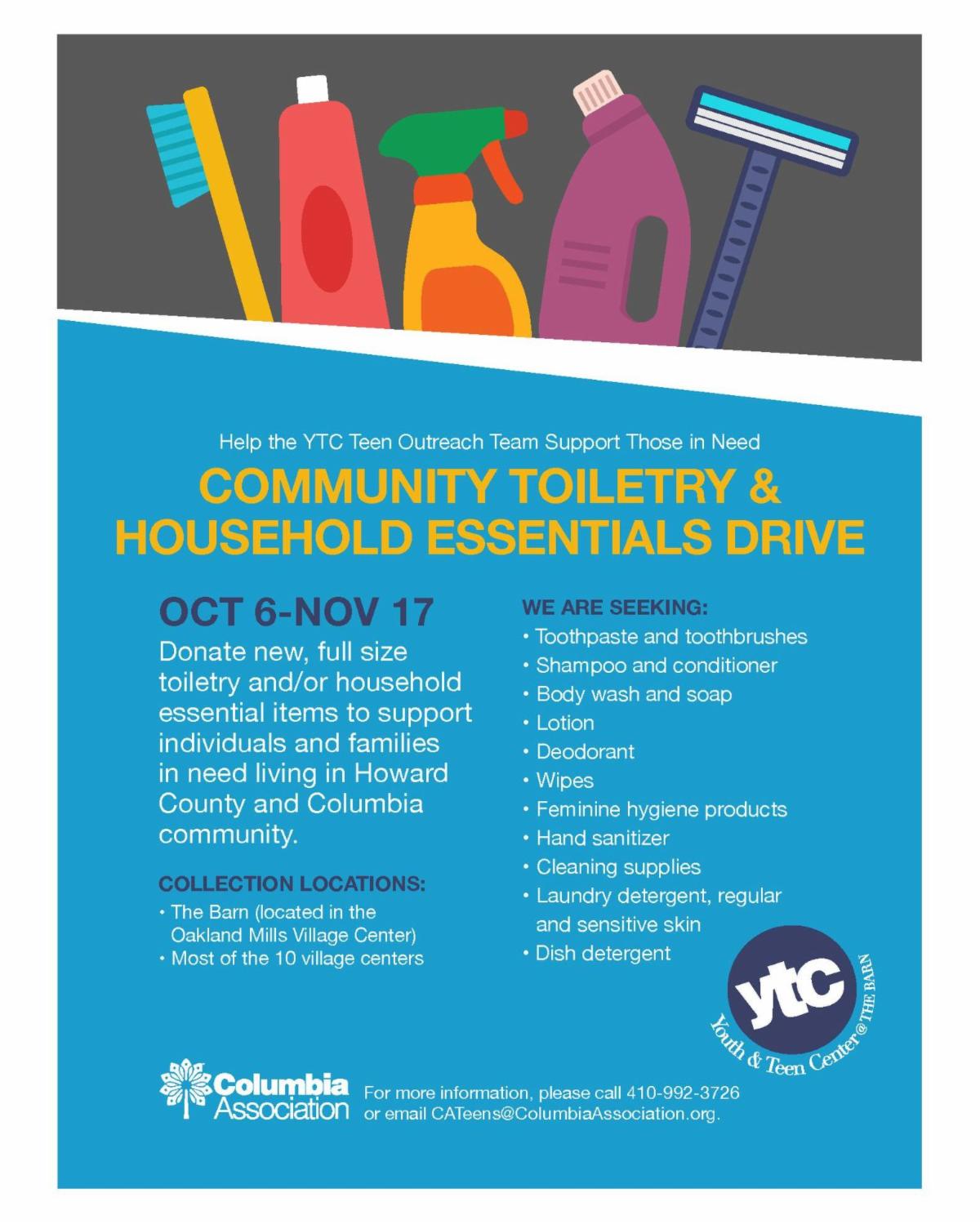 In addition to these non-perishable food items, there is an urgent need for the following essential household and hygiene items to support local Howard County families, including: