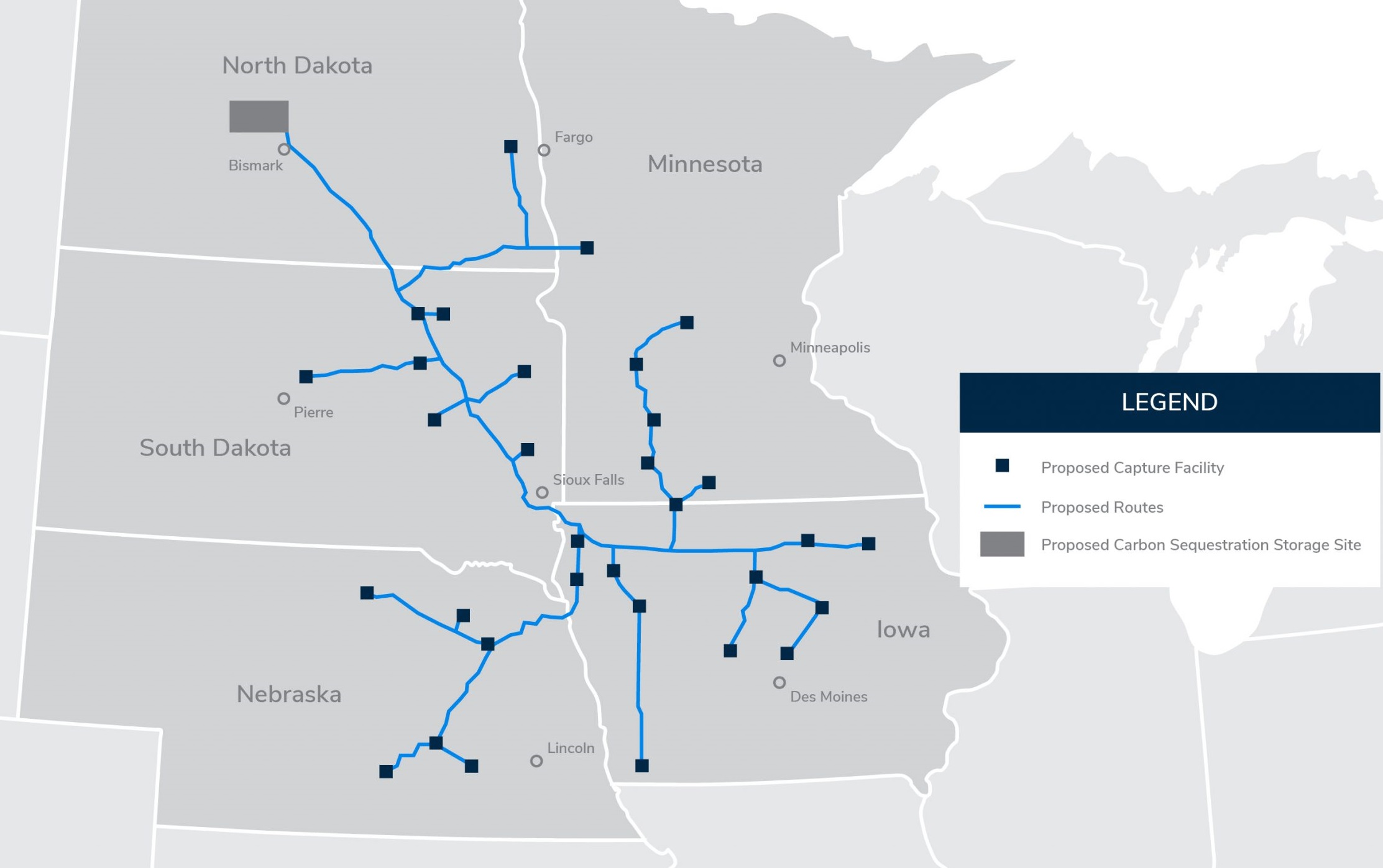 The ND Public Service Commission has scheduled four hearings over the next two months on a proposed pipeline that would transport carbon dioxide from 32 ethanol plants to be sequestered underground in Mercer or Oliver Counties. The first of the hearings on Summit Carbon Solutions' project is set for March 14 at the Heritage Center in Bismarck. Additional hearings are planned in Gwinner, Wahpeton and Linton. Summit's application to the PSC totals 3,122 pages. The document includes extensive environmental, biological and cultural resource studies, as well as detailed maps of the proposed route. In addition to obtaining PSC siting approval, the company will also need a permit from the ND Industrial Commission for underground storage in Mercer and Oliver counties. Summit Carbon Solutions is partnering with 32 ethanol plants in the Dakotas, Iowa, Minnesota and Nebraska to develop the largest CO2 capture and storage project in the world. The pipeline network will cover about 2,000 miles, and represents a total investment of $4.5 billion, nearly $900 million of which is in North Dakota. Upon completion, a study by Ernst & Young indicates the project will contribute an average of $465,000 in new property taxes annually to every North Dakota county in which the project is located. Click here to see the PSC hearing notice with dates and locations of the four hearings.