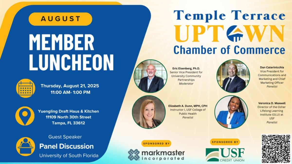 If you're interested in the many ways the community can be involved with USF, OLLI Director Veronica Maxwell will be one of four panelists discussing that topic in a program presented by the Temple Terrace Uptown Chamber of Commerce.