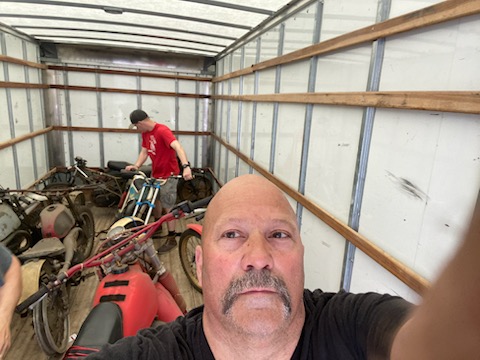Labor Day Weekend Hugh, Tim, Zachary and Mike Smith flew to the West Coast again and packed and loaded up a 26 Foot Penske truck to the very brim with a Original Bultaco Inventory.