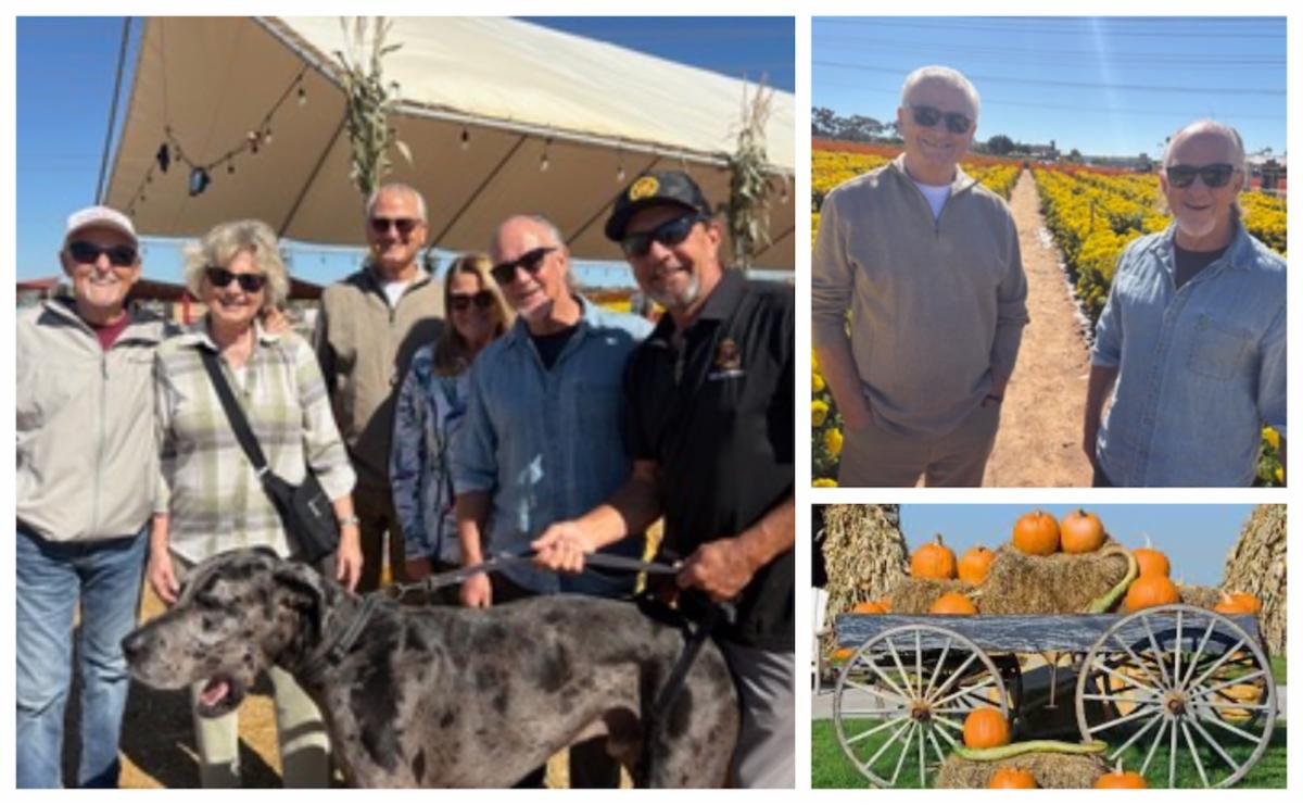 There can't be a better way to welcome fall than becoming "pumpkin patch kids" again. A group of Marston Chapter members went pumpkin hunting at the Carlsbad, CA Pumpkin Patch. (Photos L-R) The group led by Gunner,,Chief Pumpkin Sniffer, Tom Madeyski's little pup. Sam Wurtzbacher and Steve Rowe; some welcoming pumpkins.