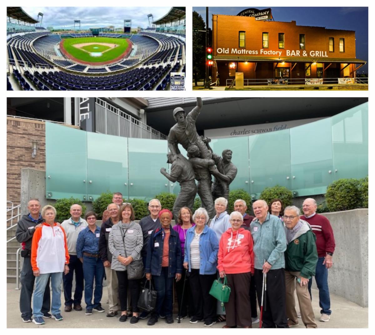 Baseball season may be over for the winter, but members of the Mott and Greater Ozark Chapters met in Omaha, NE, and toured Charles Schwab Field right off the bat. It’s the home of the Men’s College World Series each June. The group photo was taken in front of the iconic “Road to Omaha” statue. They took in the VIP suite and the Press Box, and were able to go on the field, remembering their college days. Dinner was at The Matt, the Old Mattress Factory. The next day’s activities included a tour of the Council Bluffs YMCA Healthy Living Center.